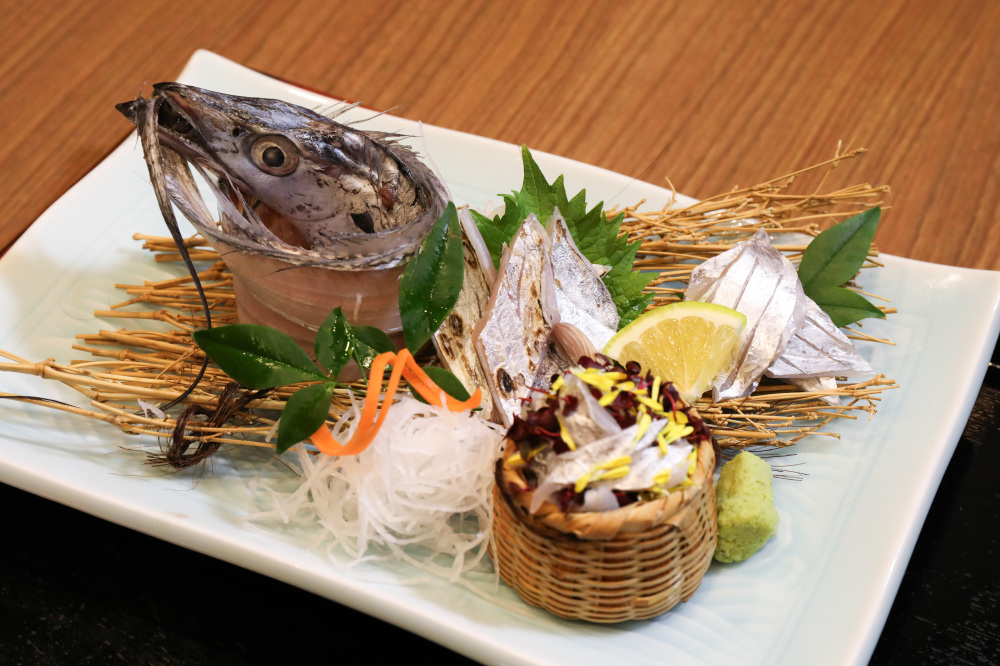 身が厚く、脂のりが良い有田の太刀魚は、刺身・炙り・焼き物いずれでも評価が高く、鮎茶屋では人気の「太刀魚ごのみ膳」や、名物の「太刀魚寿司」も味わえます。