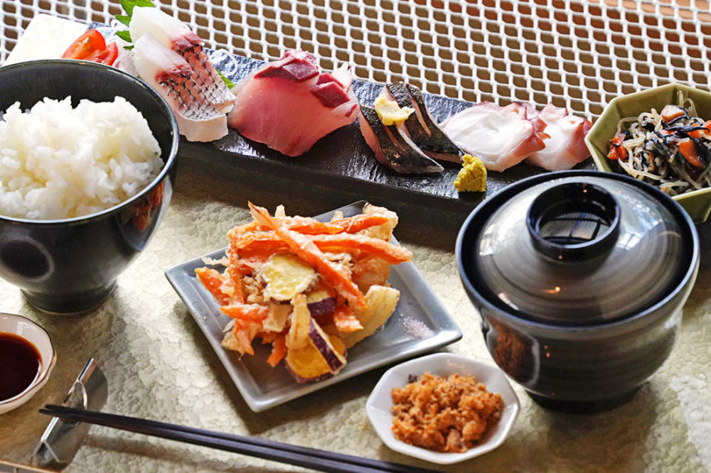 一本釣り漁で知られる漁師町・加太の路地裏をぶらりと歩けば、ひょっこり現れる古民家カフェ。築100年の建物をリノベーションしたおしゃれな店内で、その日に水揚げされた魚介を堪能できます。この店で提供されるお魚はオーナーのお父さんや地元の漁師さんから直接仕入れたもので、どれも間違いのないおいしさです。ランチタイムに狙いたいのは数量限定の「海の恵み定食」。日替わりで旬魚のお刺身や天ぷらなどが彩りよく盛られています。スイーツやコーヒーも美味とあって、店内は女子率高めです。