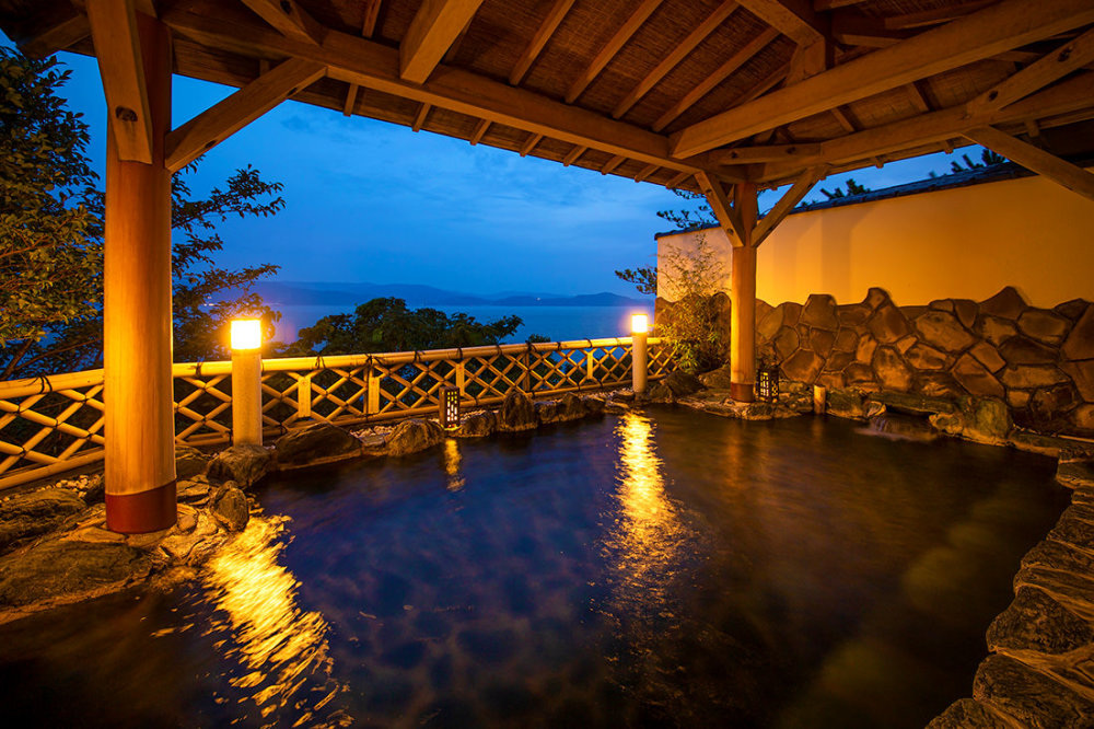 万葉の時代から和歌に詠まれ、「絶景の宝庫和歌の浦」として日本遺産にも登録された地で優雅な滞在を!岬の突端から和歌浦湾を一望する絶景露天風呂、大浴場、多彩な貸切風呂などでゆったり過ごせます。美しい夕景や対岸に浮かぶ和歌山マリーナシティの夜景、漁火もロマンチックです。女性客にはアメニティバイキング、ネイル用品の無料貸し出しといった細やかなサービスが人気。館内にはSNSフォトスポット真凜もあります。シアタールームタイプの貸切露天風呂客室で、ラグジュアリーな女子会を楽しむのもオススメ。