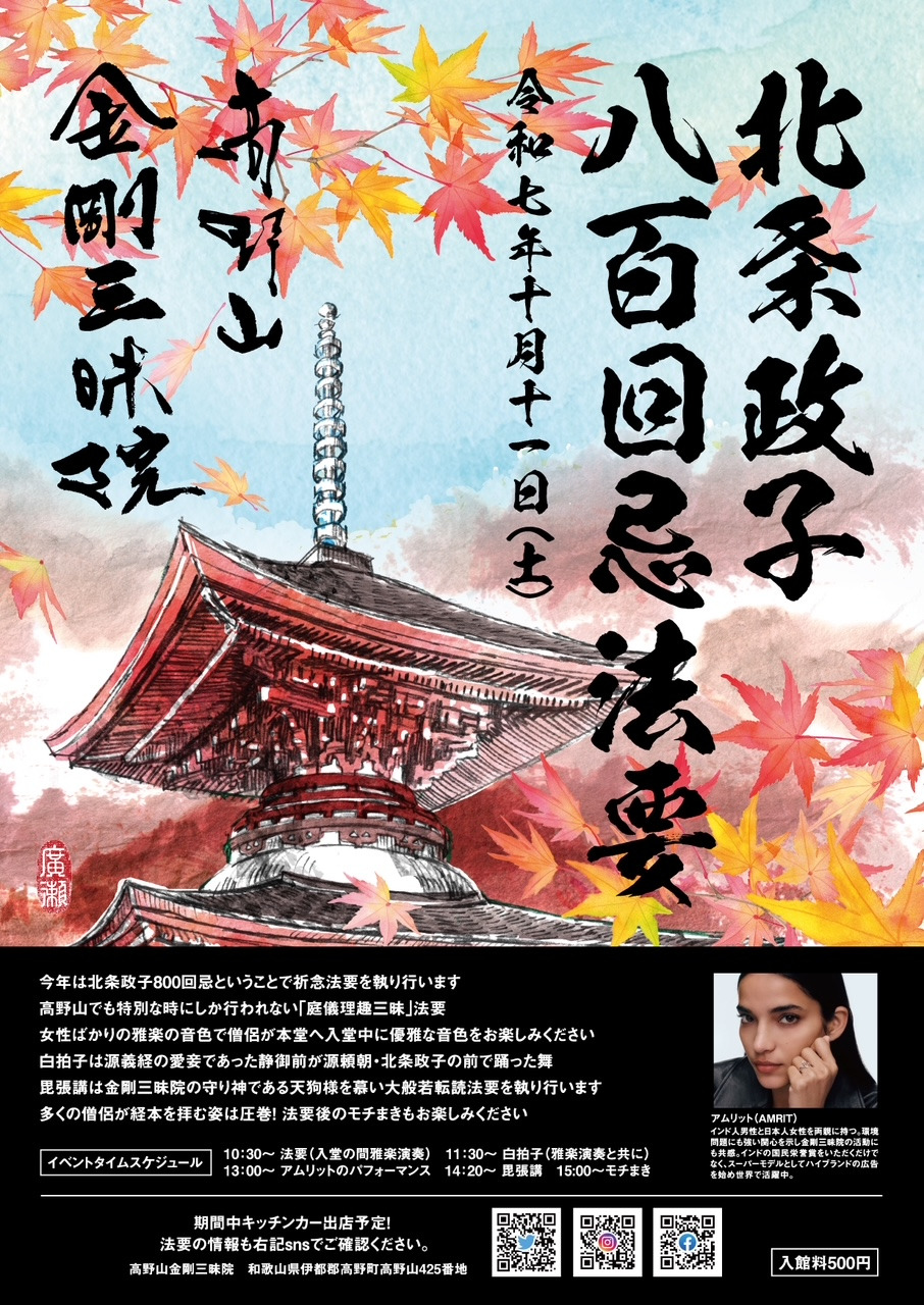 10月11日(土)高野山金剛三昧院で「北条政子八百回忌法要」が執り行われます