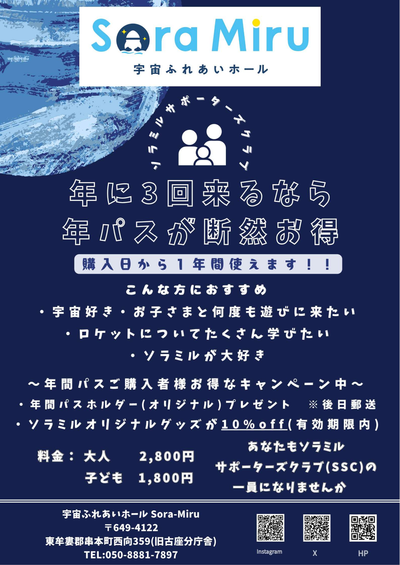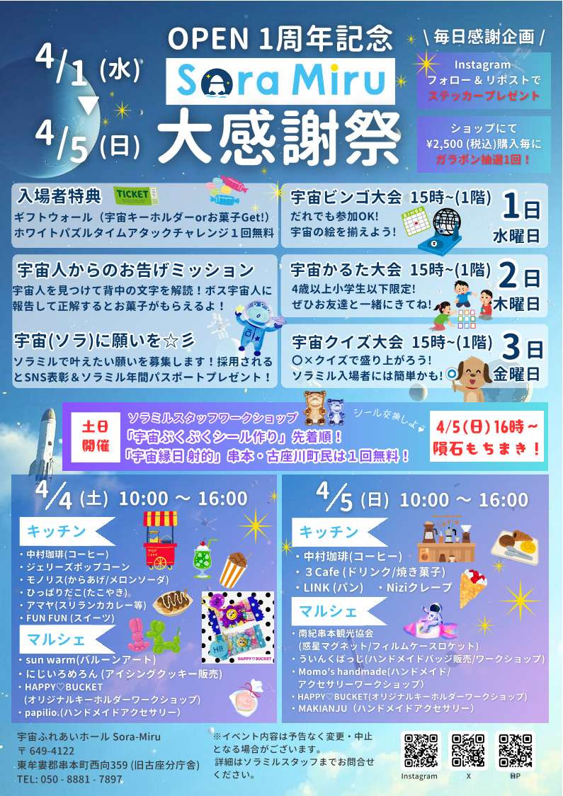 4/1(水)~4/5(日)串本町の宇宙ふれあいホール「Sora-Miru」オープン1周年記念イベント実施!