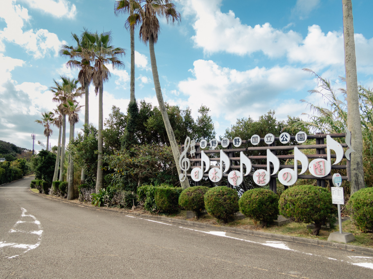 日本童謡の園は、JR見老津駅とJR江住駅の間に位置する江須崎にある、音楽と自然を楽しめる遊歩道。園内にはさまざまなモニュメントがあり、「まりと殿さま」「鳩ぽっぽ」「赤とんぼ」「みかんの花咲く丘」など、懐かしい童謡10曲が流れ、訪れる人々に温かみのある時間を提供。童謡を聴きながら、枯木灘の美しい景色を眺めたり、芝生の広がる公園でピクニックを楽しんだりと、穏やかなひとときを過ごせます。また、和歌山県の「朝日夕陽百選」にも選ばれた景勝地で、天気の良い日には美しい夕焼けが楽しめるのも魅力。さらに、公園内を散策すると奥に階段があり、希少な植物が自生する江須崎島へ歩いて渡ることが可能。自然と文化が調和した、心癒されるスポットです。