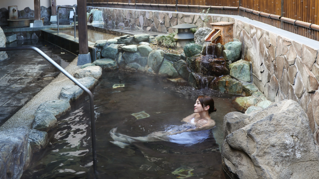 温泉はナトリウム-塩化物泉で、無色透明でやや塩分を含む湯が特徴です。内湯や露天風呂に加え、寝湯や歩き湯、壺湯など複数の浴槽が設けられており、異なる入浴スタイルを楽しむことができます。
