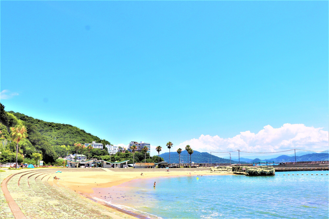 日本遺産に認定された和歌の浦エリアに位置し、歴史ある美しい和歌浦湾を目前に望むロケーション。全長 200 m のコンパクトなビーチで、湾の入り江にあるため波が比較的穏やかなことから、小さな子どもからシニアまで幅広い層に人気です。ビーチの一角には公園のように大型遊具が置かれ、バーベキュー設備も整うため、子ども連れの家族やグループで、毎年にぎわいを見せています。環境省が推薦する「快水浴場百選」にも選ばれ、海の美しさのみならず、環境への配慮や安全性に対しても評価されています。周辺には宿泊施設が数軒点在し、和歌の浦の豊富な海の幸を堪能できます。